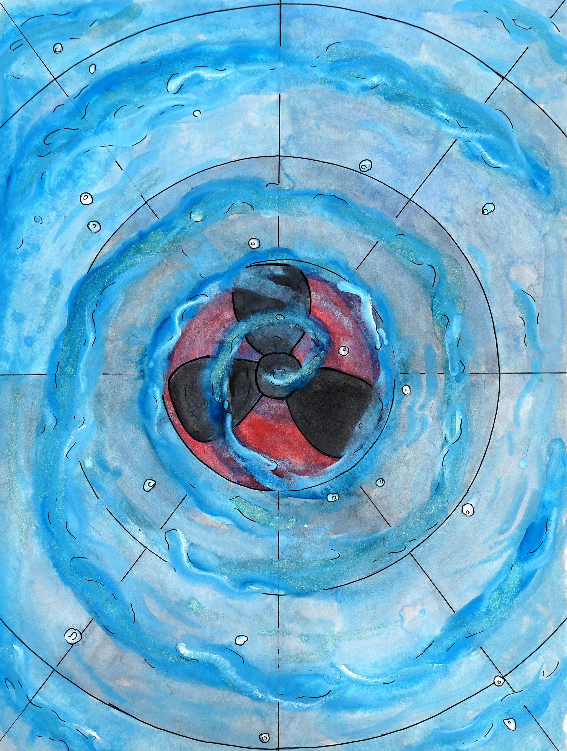 It’s hard to leave our homes. How do you say goodbye to the world you love after thirty years? But we have to think about the future, the generations to come. It always comes a time when it’s your turn to tell the story, and begin a new cycle, a new life. We travel back to the Ocean following the moon. The moon guides us, tells us where to go, reminding us that it is time to return. We take this trip in mass, changing shape as we go. We’re not yellow and brown anymore. We become black, while our bellies are now white. If you were to look up at us, you’d think we were part of the sky. If you were to look down at us, you’d think we were part of the riverbed. Our eyes also change. They become big, some say immense and blue. Blue, like the Ocean we now yearn for. Blue, like our first home. It should be easy. We travel down the currents, hopping through the rapids, all the way to the sea. That is how the story goes, that is what our parents and grandparents before us told. The story has changed. The rivers have changed. Immense walls now block our way to the sea. They slow down the currents, barring our passage. There’s no way around them, just a hole with many sharp teeth. Most of us don’t make it through the hole.