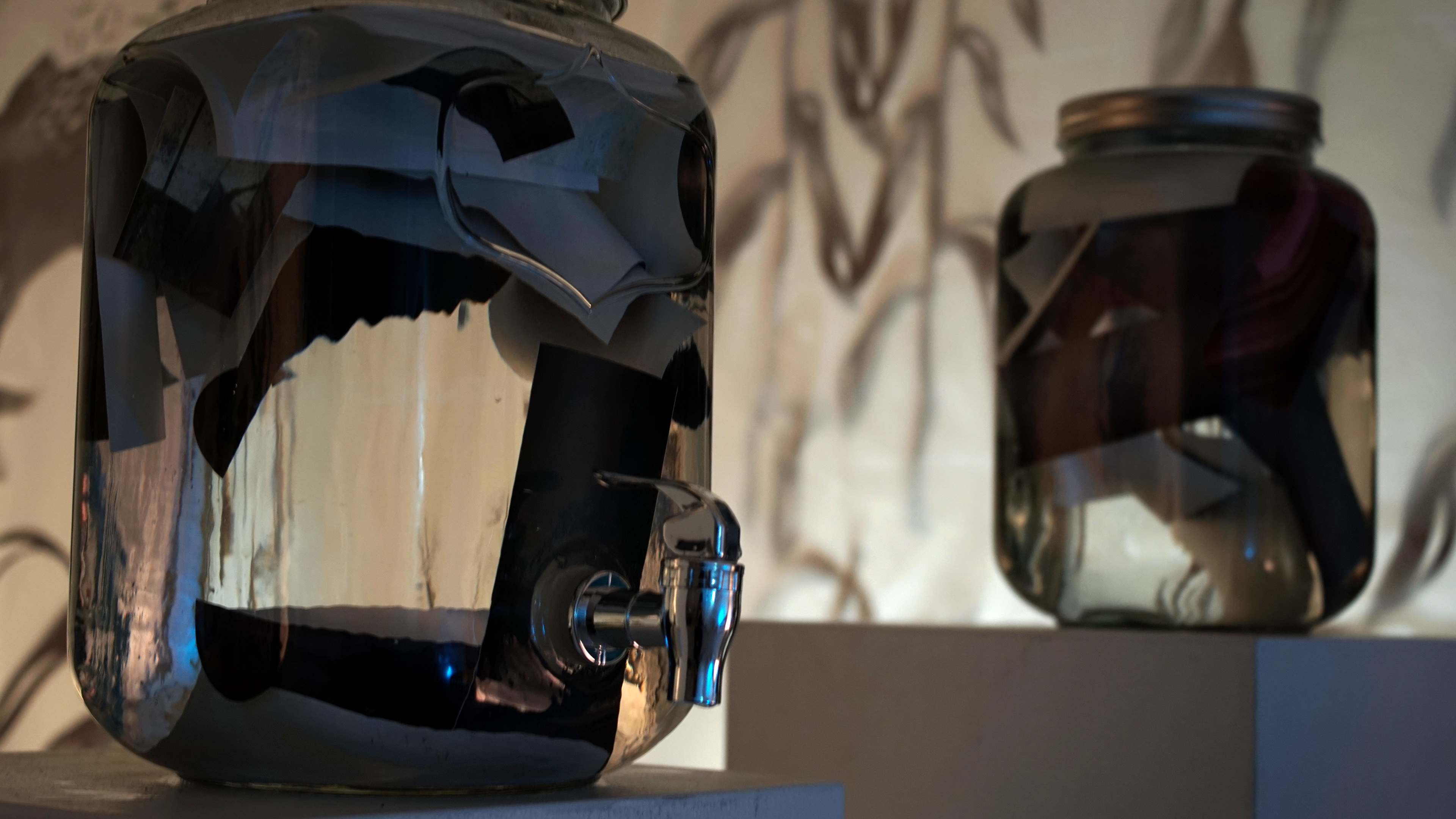 Similar to a living organism, the space responds to the audience’s intrusion. In a flow of constant movement, live performers lead the audience members/collaborators to the center of the maze. During this process, the history of the myriad displacements, is told through shadow stories projected on the walls of the labyrinth. From the center of the maze emanates a visceral and improvised sonic piece, performed by two musicians who vocally loop ambiance of water and memory loss. Once they audience/collaborators arrives at the center of the labyrinth they encounter four containers full of “Quabbin Water,” in which pictures taken in the displaced towns Prescott, Greenwich, Dana and Enfield lie submerged.